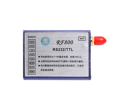 RF800模塊是高度集成半雙工微功率無線數據傳輸模塊,其嵌入高速單片機和高性能射頻芯片。RF800模塊采用高效的循環交織糾檢錯編碼,抗干擾和靈敏度都大大提高,最大可以糾24bits連續突發錯誤,達到業內的領先水平。RF800模塊提供了多個頻道的選擇,可在線修改串口速率,發射功率,射頻速率等各種參數。RF800模塊能夠透明傳輸任何大小的數據,而用戶無須編寫復雜的設置與傳輸程序,同時小體積寬電壓運行,較遠傳輸距離,豐富便捷的軟件編程設置功能,使之能夠應用與非常廣泛的領域。